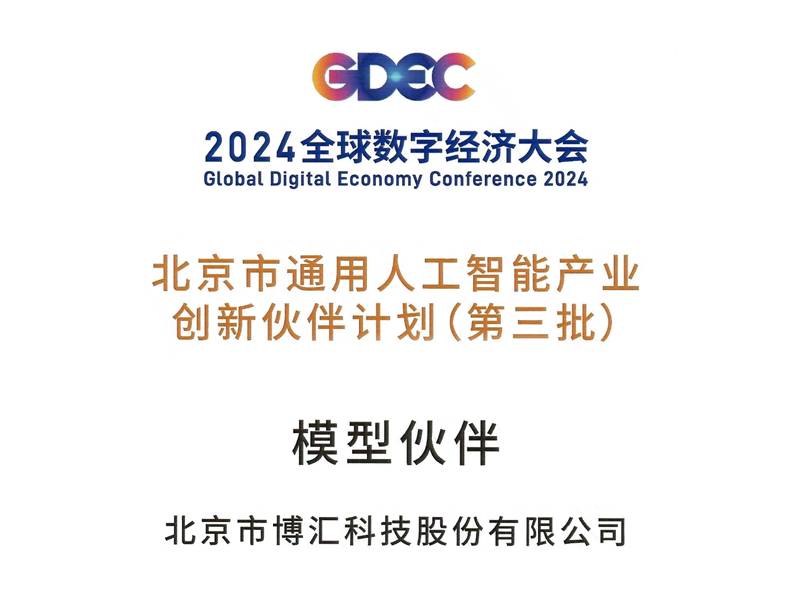 ?2024年7月1日,以“應用即未來—大模型賦能千行百業,新生態擁抱產業未來”為主題的2024全球數字經濟大會人工智能專題論壇在北京成功舉辦,期間公布了北京市通用人工智能產業創新伙伴計劃(以下簡稱“伙伴計劃”)第三批名單。博匯科技憑借多樣化、高性能的的模型要素能力以及AI產品和場景化應用貢獻,成為伙伴計劃第三批“模型伙伴”。